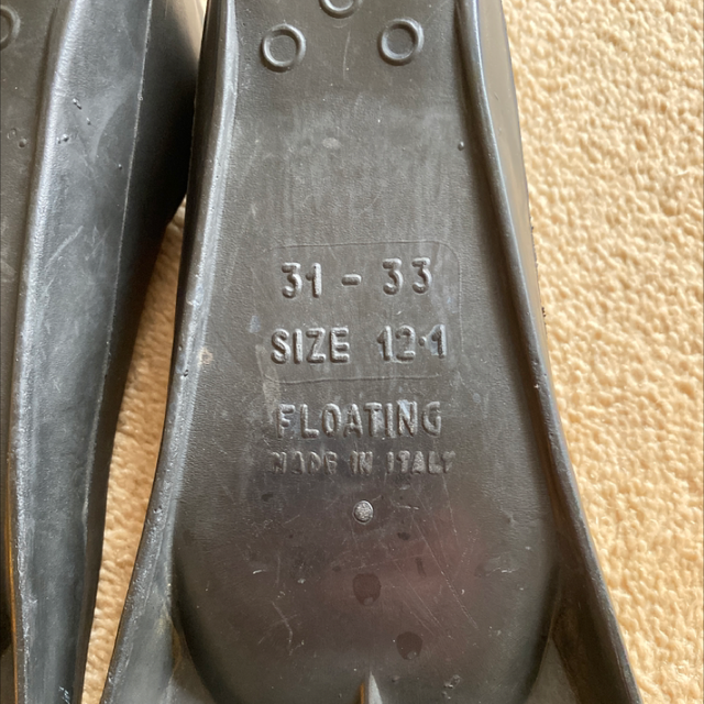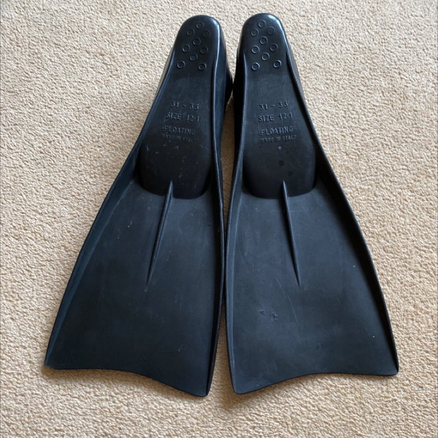 Preloved long blade swim fins in used condition. Size 12-1 (EU 31-33).